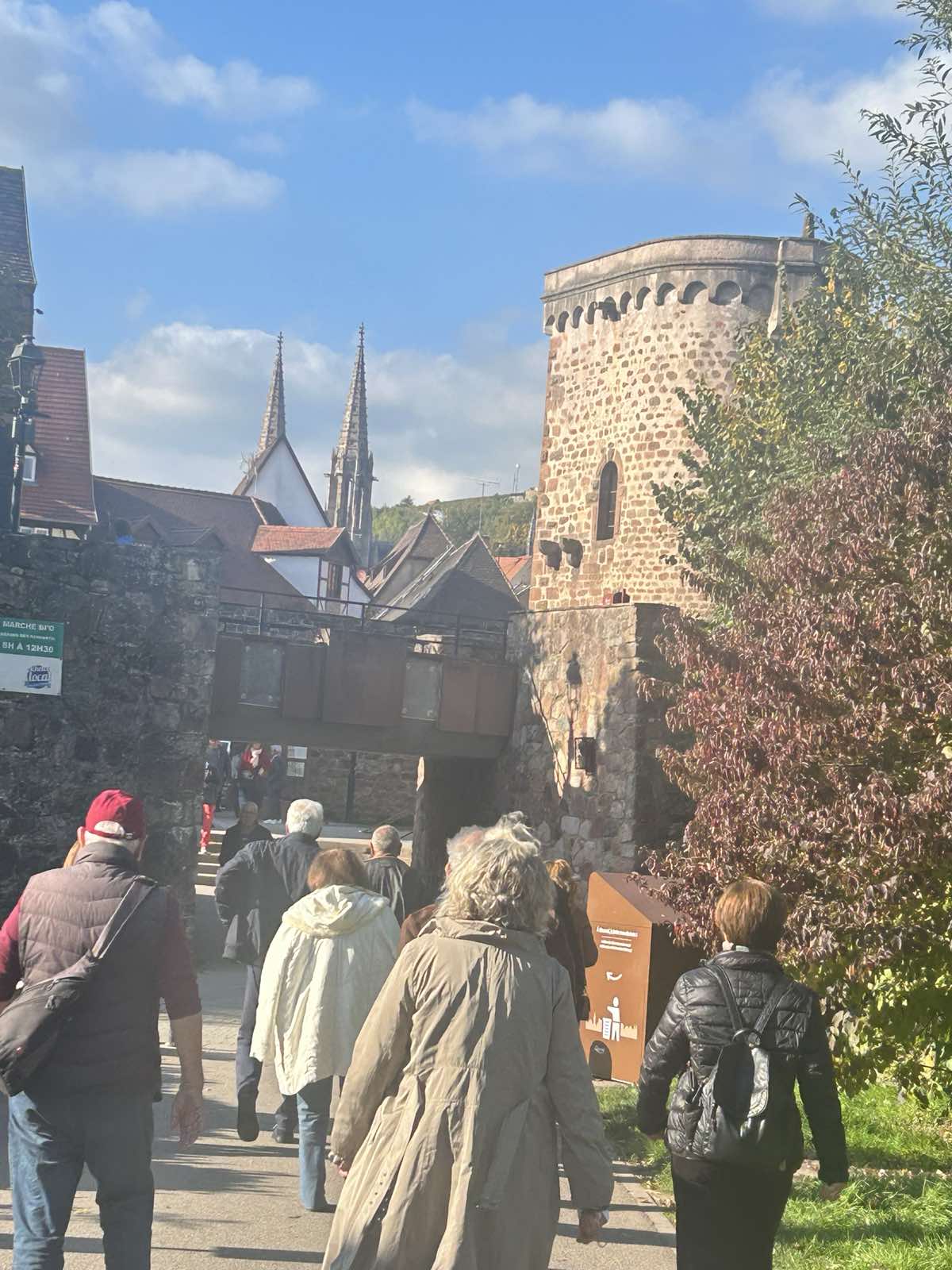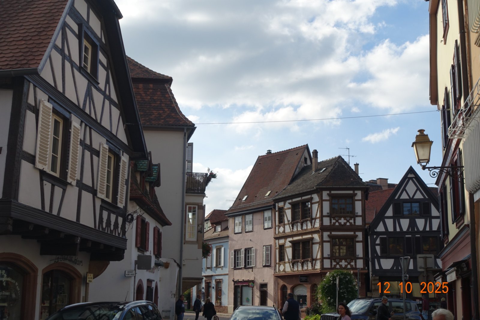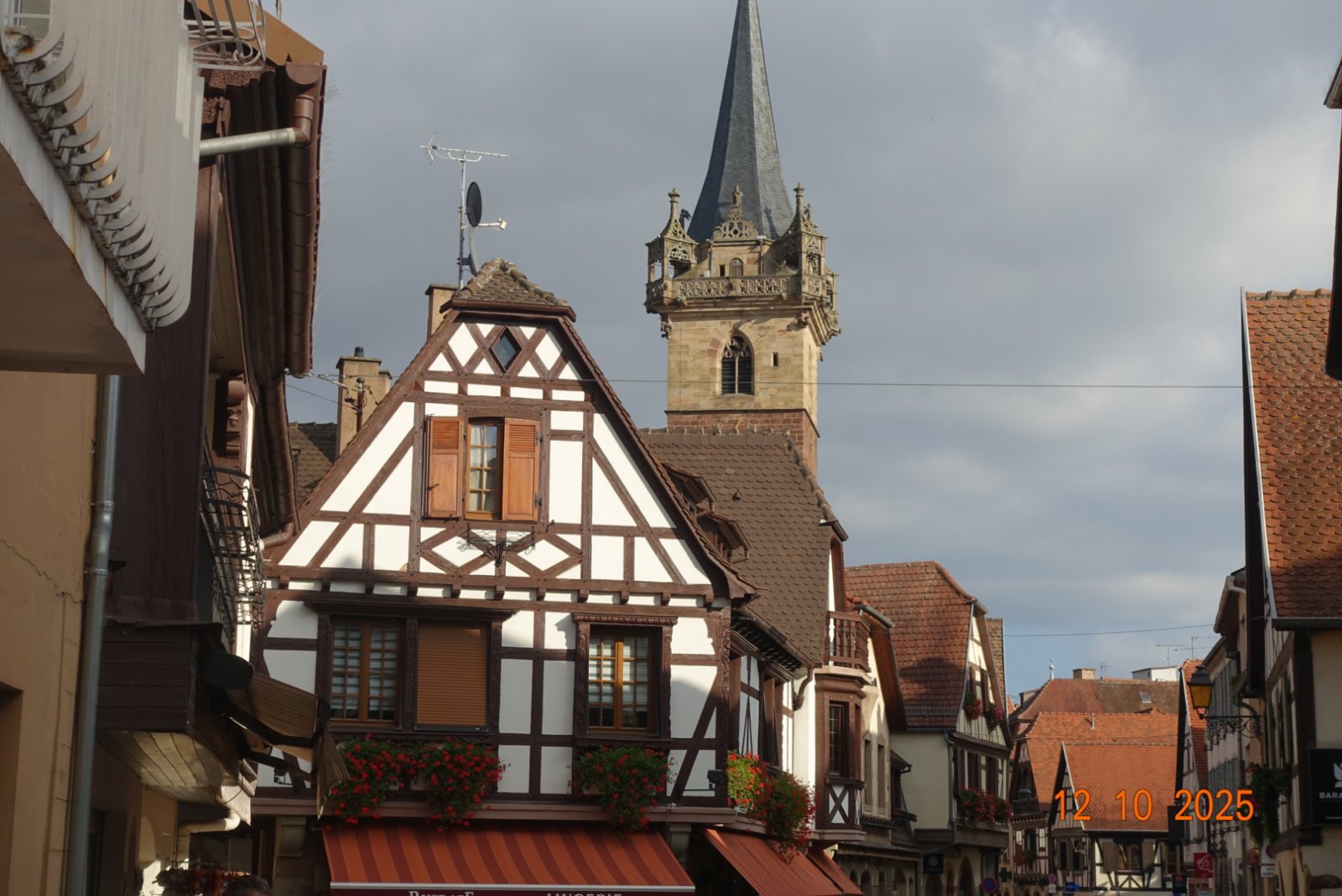 Πριν φτάσουμε στα ελβετικά σύνορα, κάναμε μια ευχάριστη εκτός προγράμματος στάση στο Ομπερνέ, ένα υπέροχο, γραφικό αλσατικό χωριό με παραδοσιακά σπίτια, γεμάτα λουλούδια και ξύλινα δοκάρια. Εκεί γευματίσαμε και δοκιμάσαμε τοπικά τυριά και κρασιά.