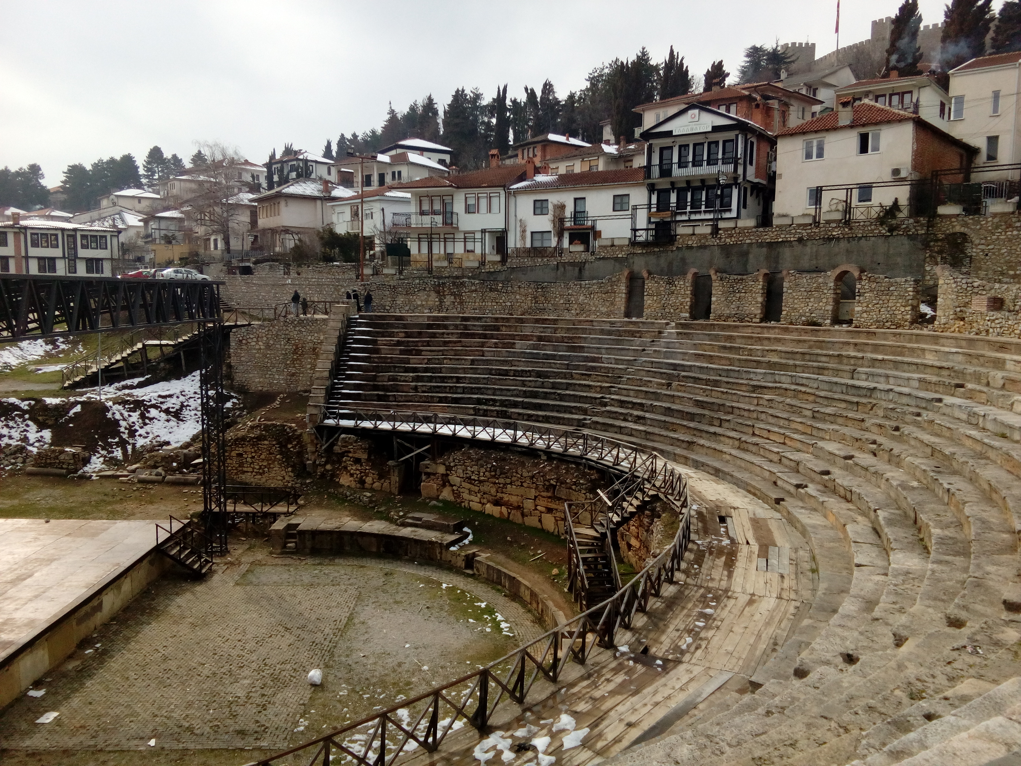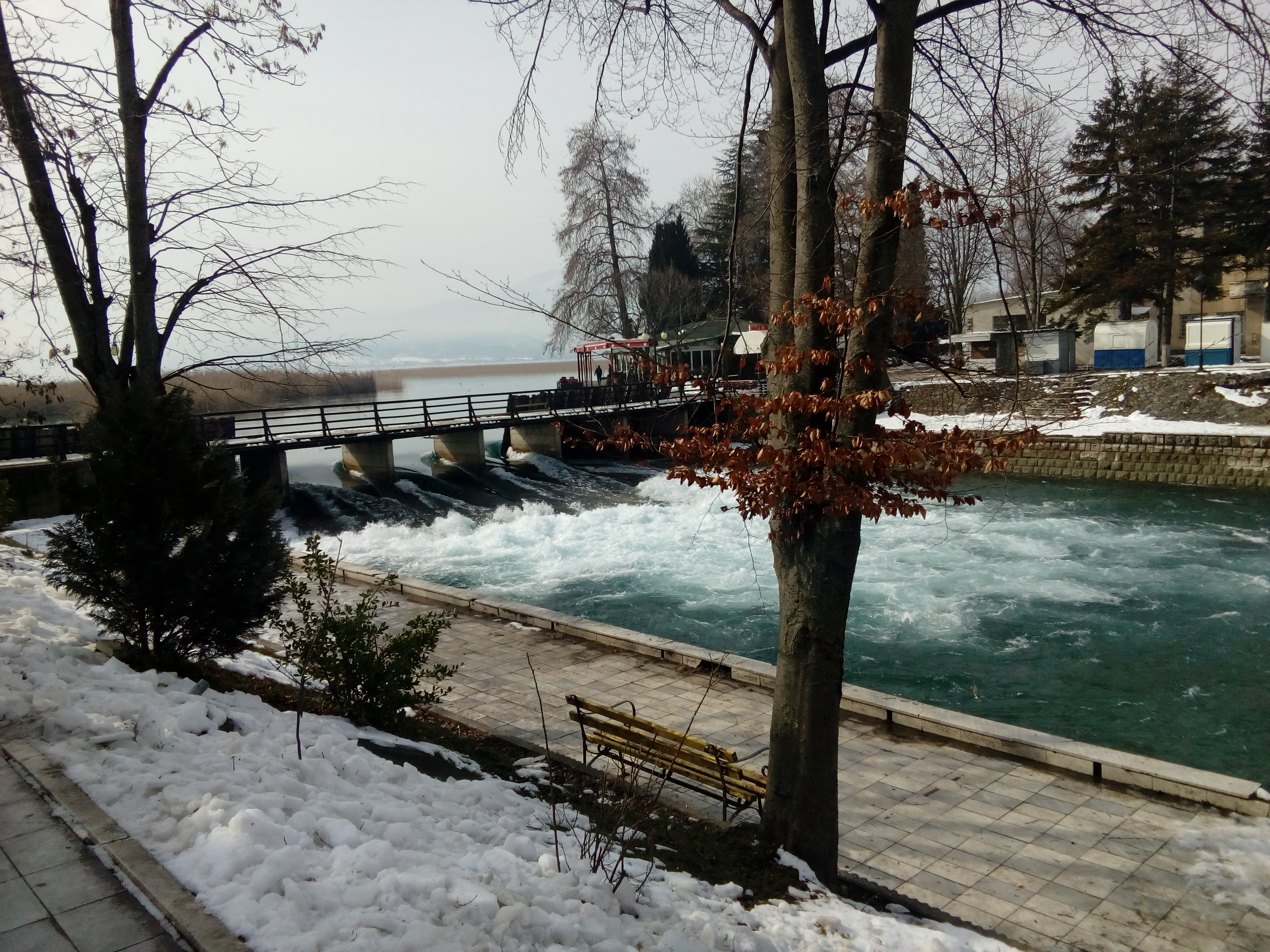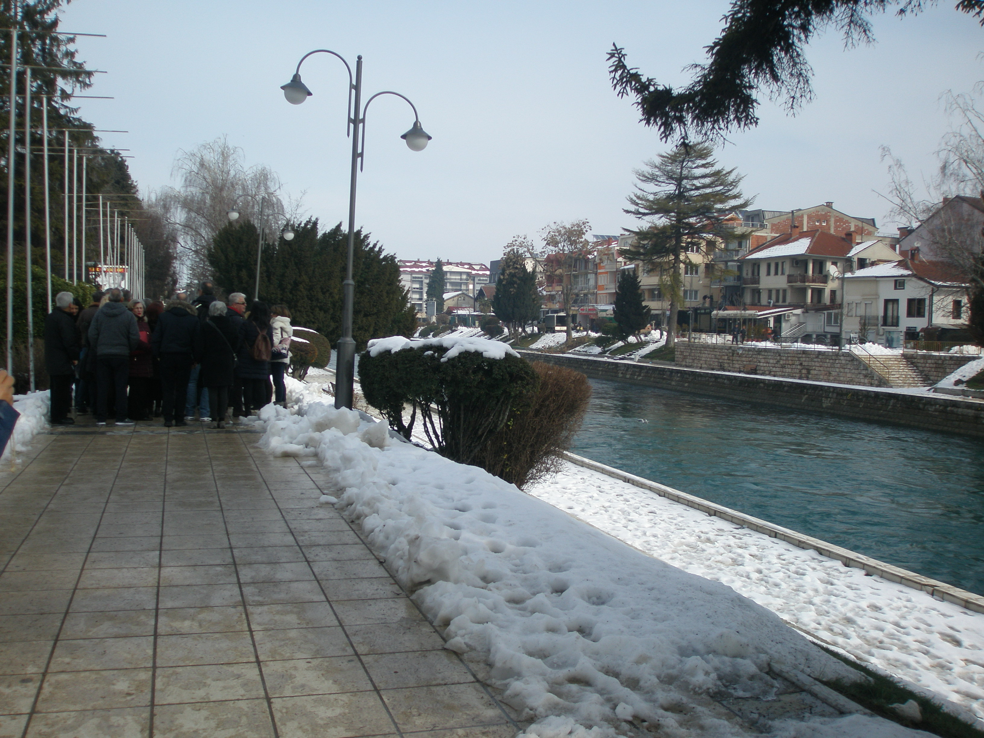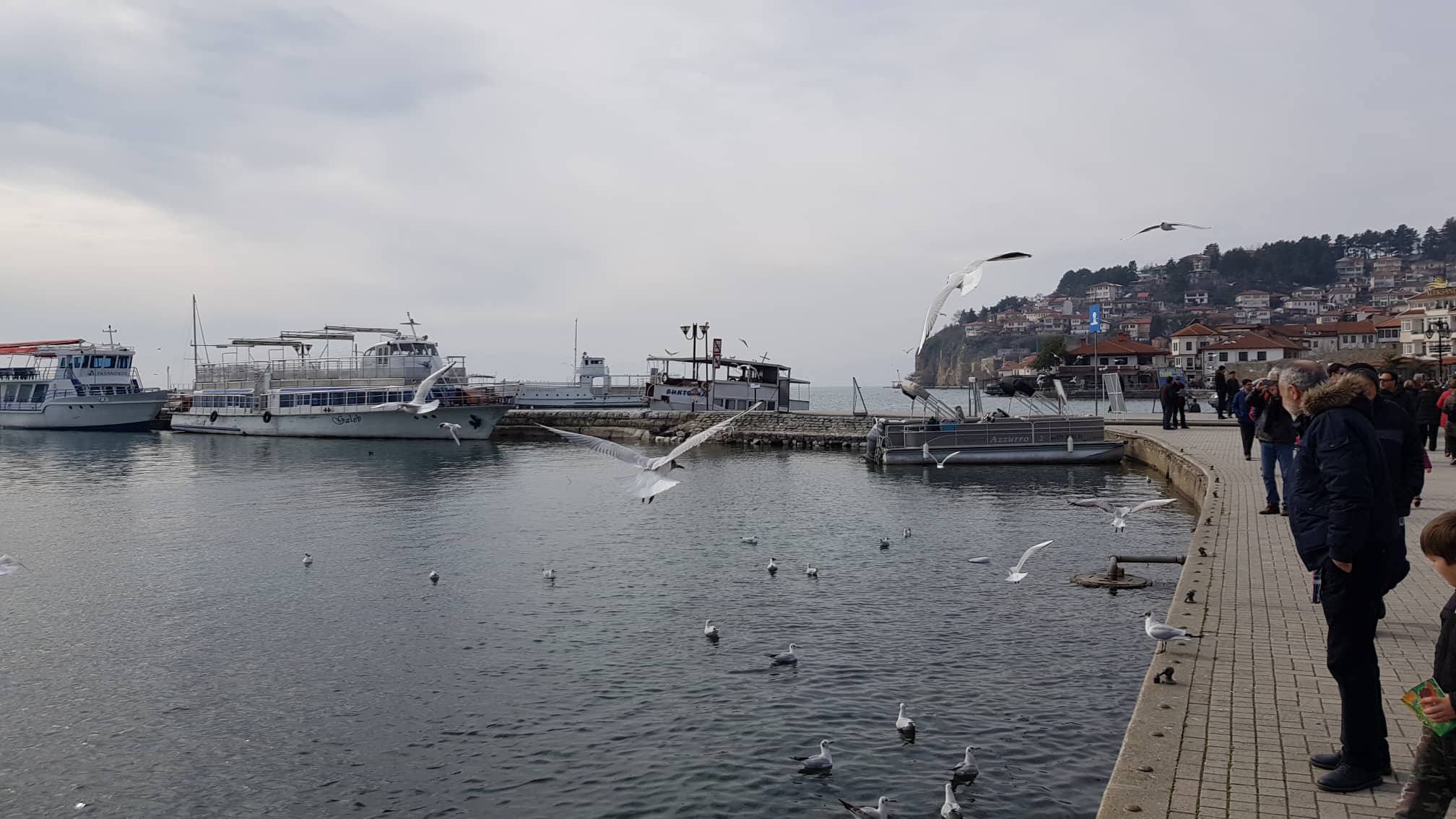Και μόνο η υπέροχη εικόνα της χιονισμένης Λίμνης που αντικρίσαμε παίρνοντας το πρωινό μας, θα μπορούσε να μας αποζημιώσει για το ταξίδι μας… Ωστόσο, το πρόγραμμά μας περιλάμβανε πολλές στάσεις και για να προλάβουμε να γνωρίσουμε όσο περισσότερα αξιοθέατα της περιοχής, ξεκινήσαμε αμέσως μετά για την πόλη της Στρούγκας, την οποία επίσης βρήκαμε χιονισμένη, προκαλώντας μας να τραβήξουμε υπέροχες φωτογραφίες στις χιονισμένες ακτές για να κρατήσουμε ενθύμιο αυτού του μοναδικού και σπάνιου τοπίου.