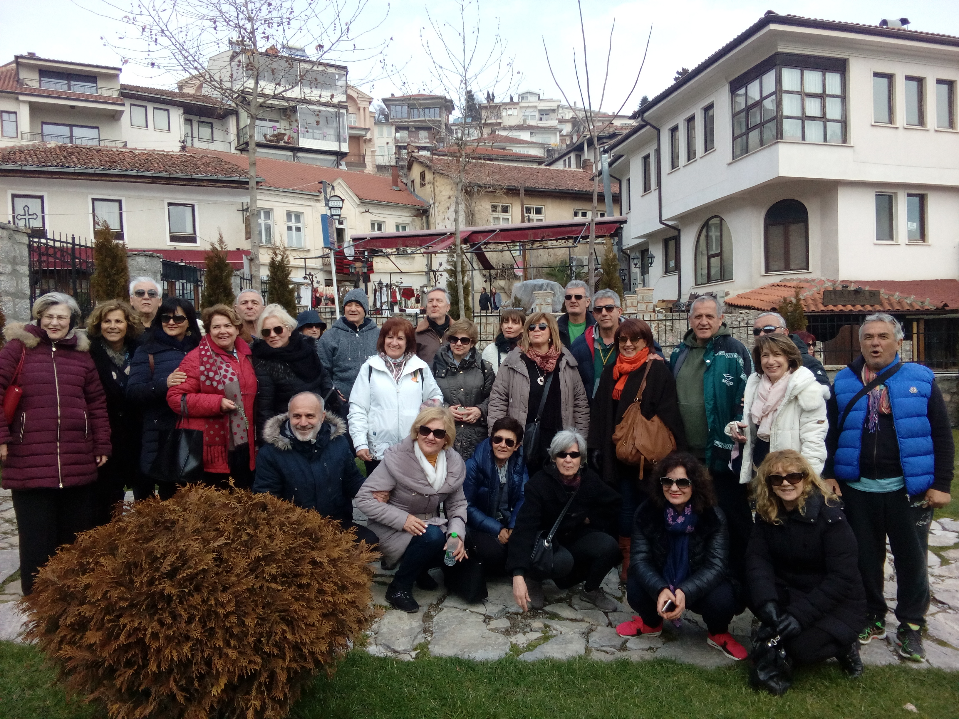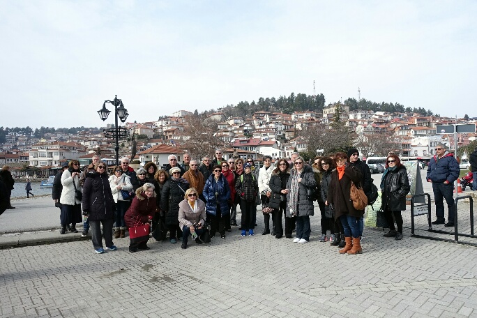 Αφού περιηγηθήκαμε στην πόλη, επιστρέψαμε στην Οχρίδα. Εντυπωσιαστήκαμε από τους 2 μεγάλους αρχαίους ναούς, την Αγία Σοφία και την Παναγία την Περίβλεπτο και ξεναγηθήκαμε σε όλα τα σημαντικά αξιοθέατα, ανάμεσά τους το αρχαίο θέατρο και το κάστρο της πόλης. Περιπλανηθήκαμε στα στενά πλακόστρωτα δρομάκια με τα γραφικά σπίτια με τα μπαλκονάκια και ανεβήκαμε στα πιο ψηλά σημεία της πόλης που είναι πανοραμικά χτισμένη στις όχθες, για να απολαύσουμε τη θέα της Λίμνης. Πολλοί μάλιστα κάθισαν σε κάποιες από τις πολλές ταβέρνες που βρίσκονταν στα σοκάκια και απόλαυσαν φρέσκα ψάρια από τη Λίμνη και τις γαστρονομικές επιλογές των γειτόνων.